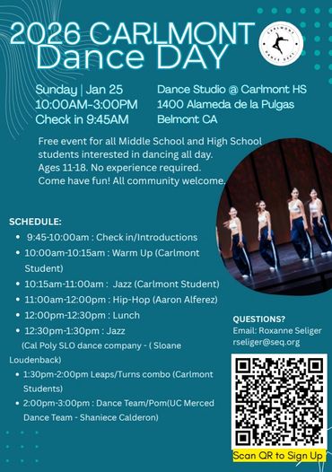 The Carlmont Dance Program is an exciting educational component of CHS comprised of beginning classes, one intermediate and one advanced production classes. Over 200 students are served each year through the standards based curriculum which meets the wide spectrum of experience in our dance community.